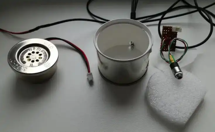 Viduje bus pati sulituota schema, garsiakalbis ir kontaktas su išoriniu pasauliu per standartinį 3.5 mm audio kištuko lizdą. Šituos elektronikos “sluoksnius” atskirsiu minkštais plastikiniais dalykais, naudojamais elektronikos prekių pakavime.